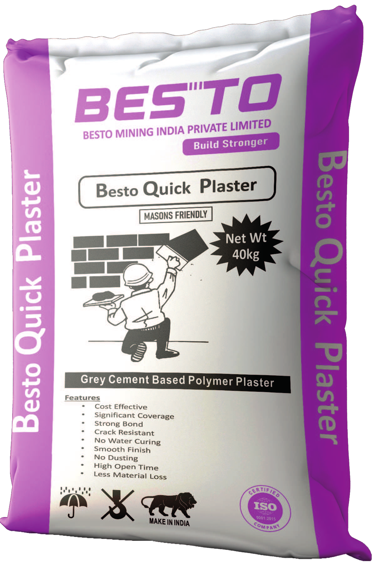 BESTO Quick Plaster is a high-quality, pre-packed plaster mortar tailored for block walls, Mivan walls, AAC blocks, and cement-rendered surfaces. It is ideal for interior and exterior applications, offering high adhesion, shrinkage crack resistance, and excellent finish. Not recommended for painted surfaces.